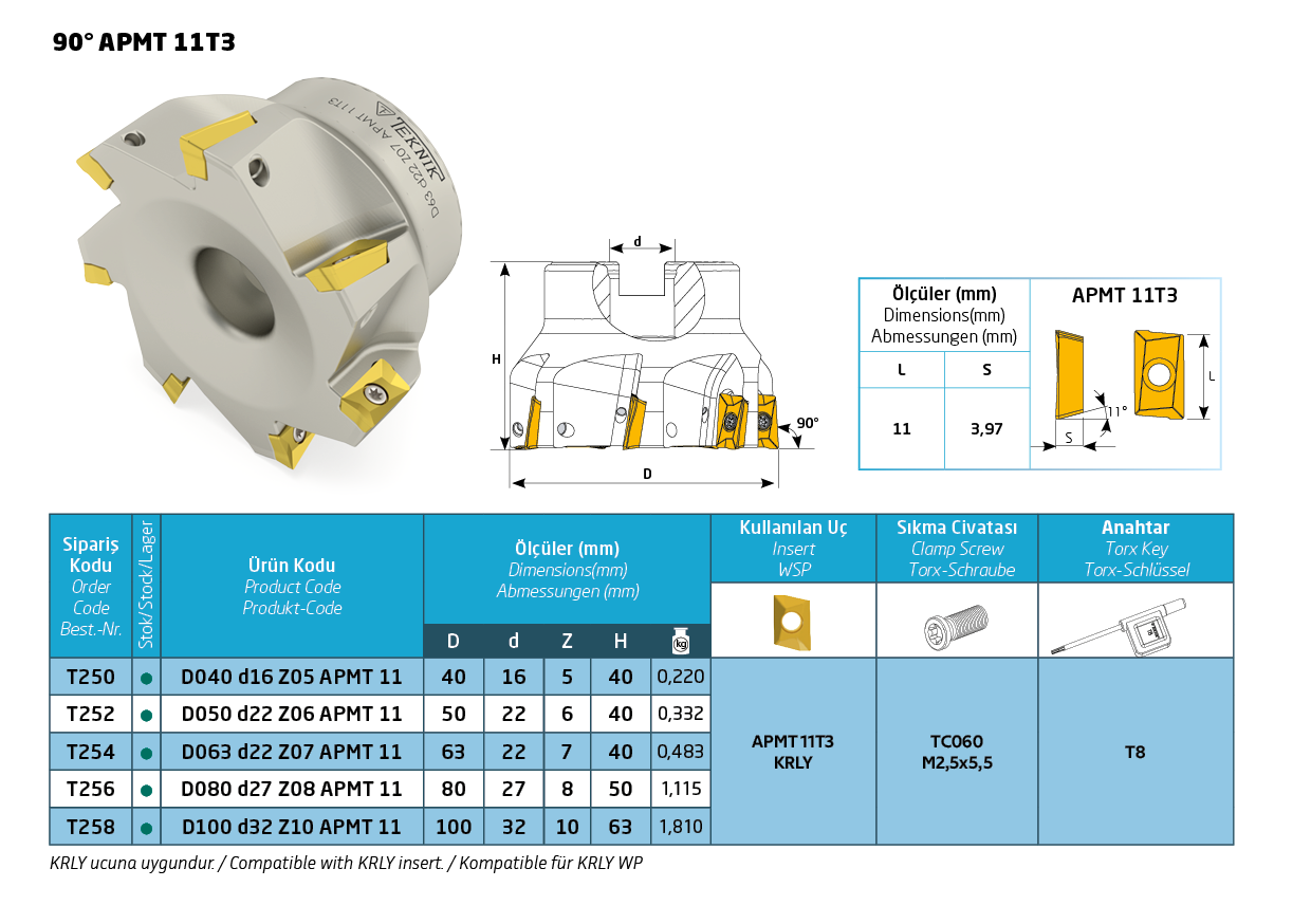 Teknik Cutting Tools | Eckmesserkopf | 90° APMT 11T3