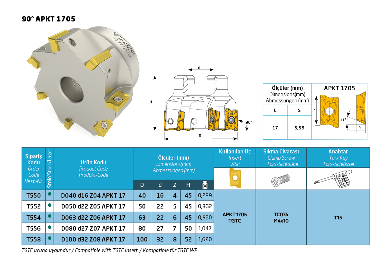 Teknik Cutting Tools | Eckmesserkopf | 90° APKT 1705