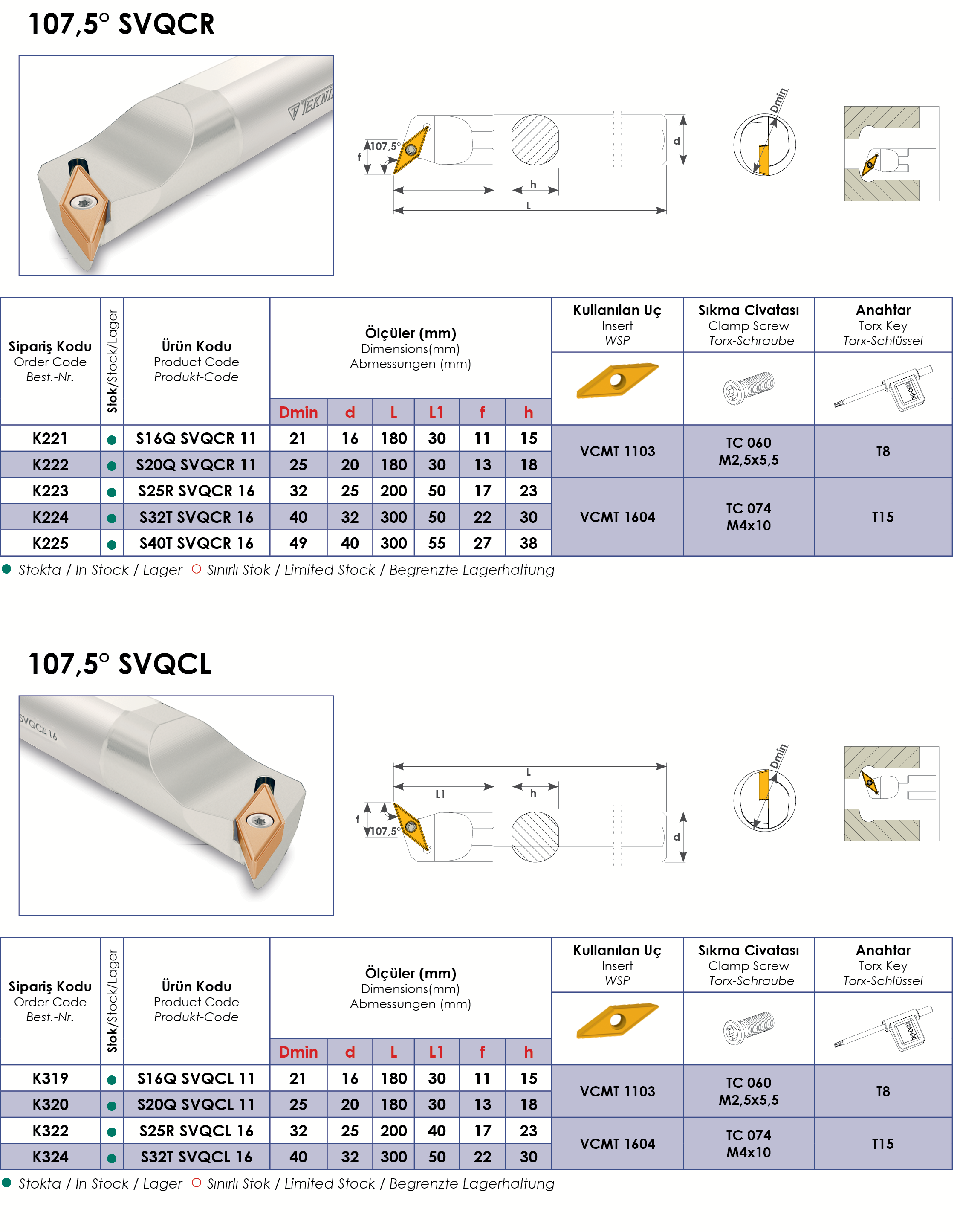 Teknik Cutting Tools | Boring Bars | 107,5° SVQCR/L