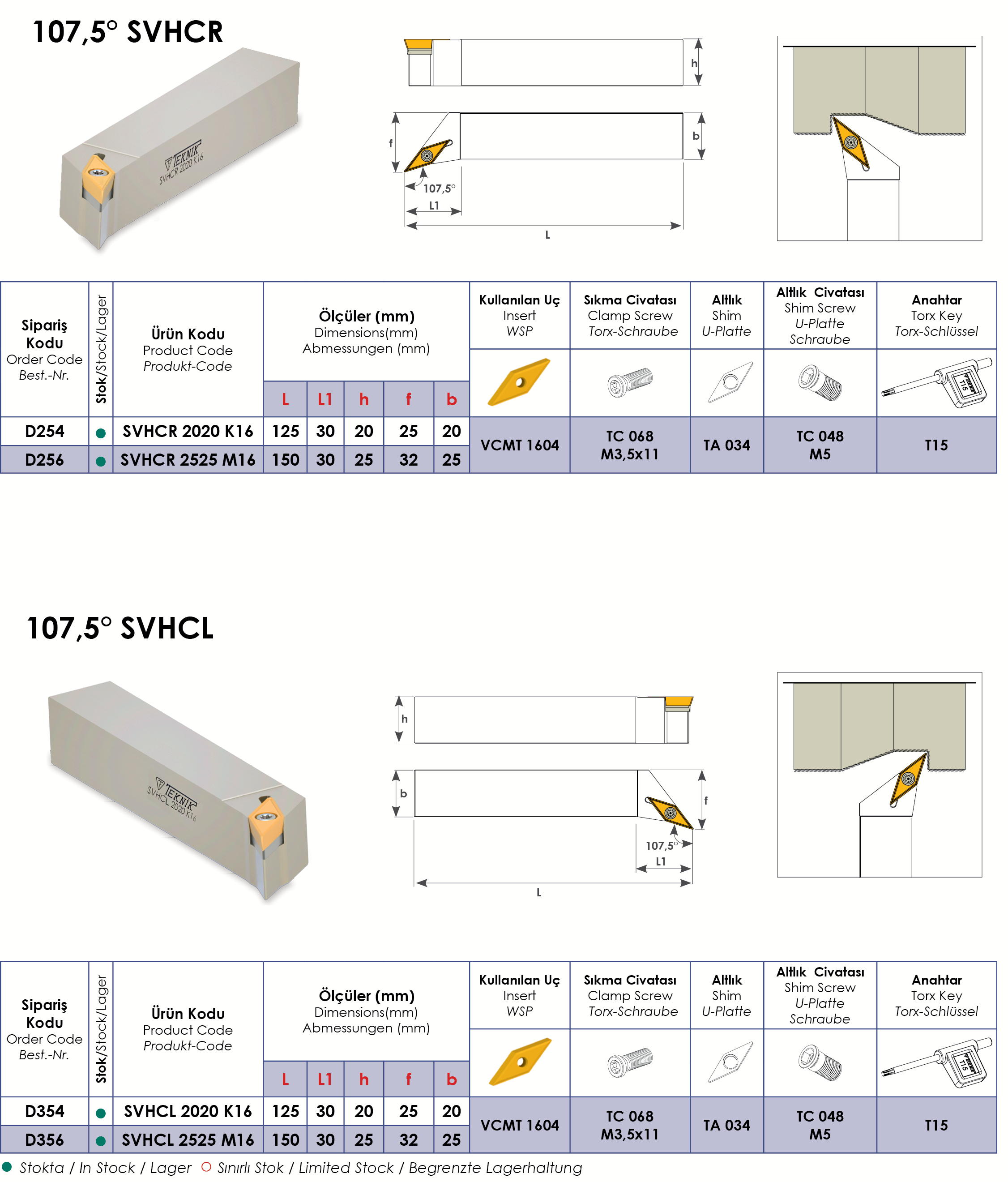 Teknik Cutting Tools | Dış Çap Katerleri | 107,5° SVHCR/L
